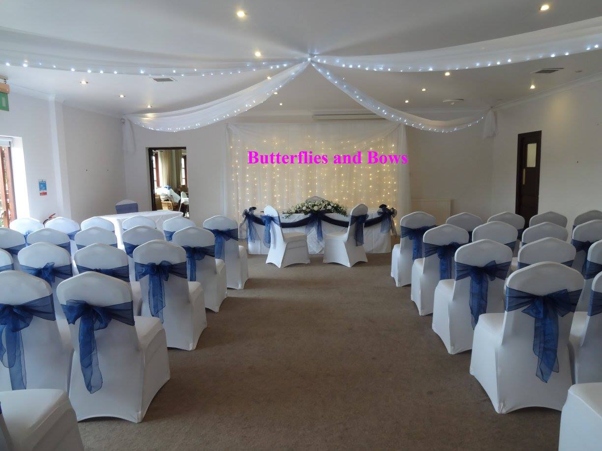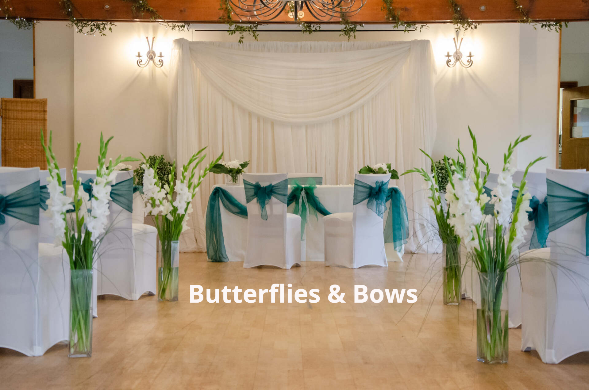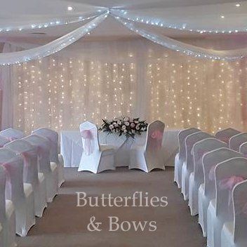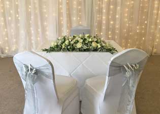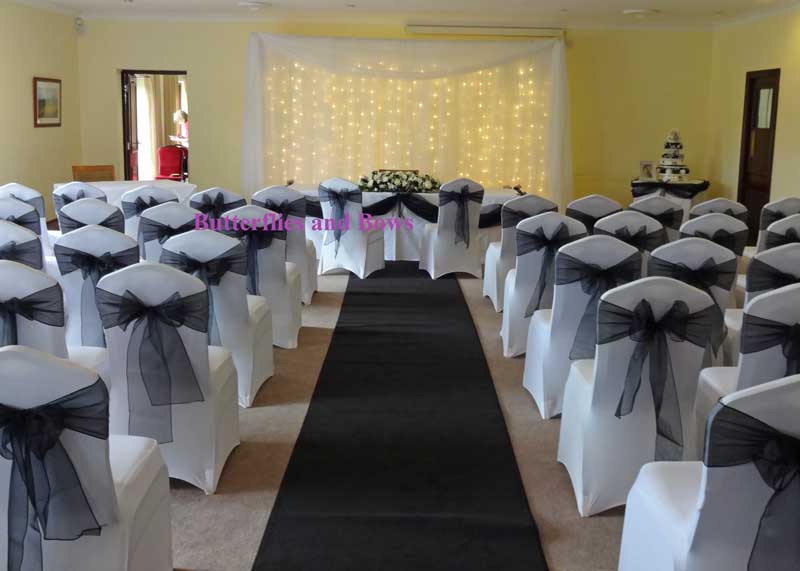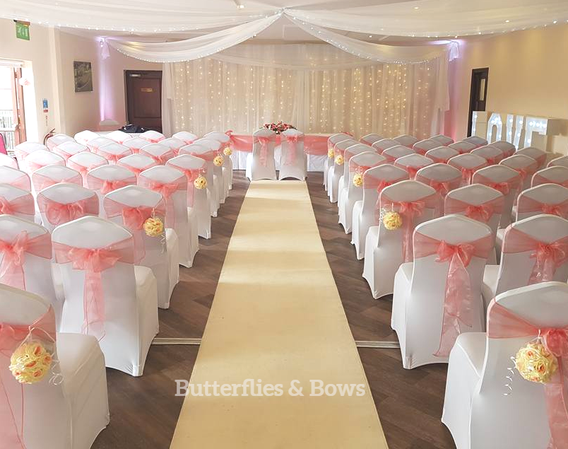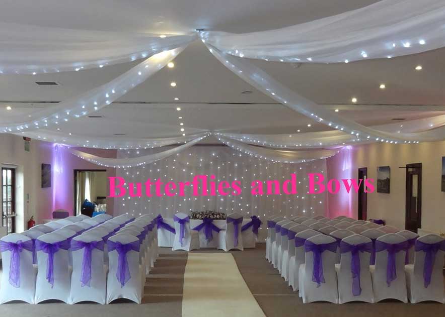 We can supply all you need to create a beautiful and affordable setting for your wedding ceremony, including chair covers and sashes, starlight backdrops, drapes, flowers etc. Have a look at some of our ceremony set-ups below for inspiration. Please also see our WEDDING BOUQUETS