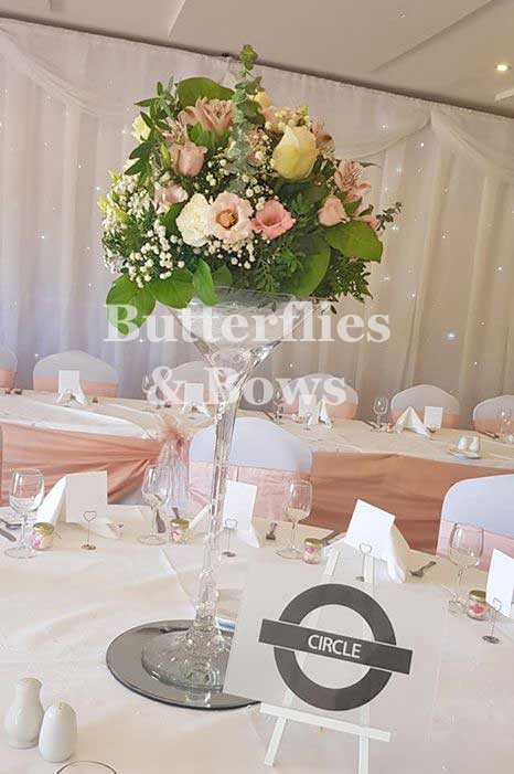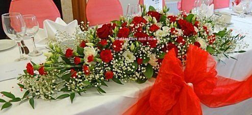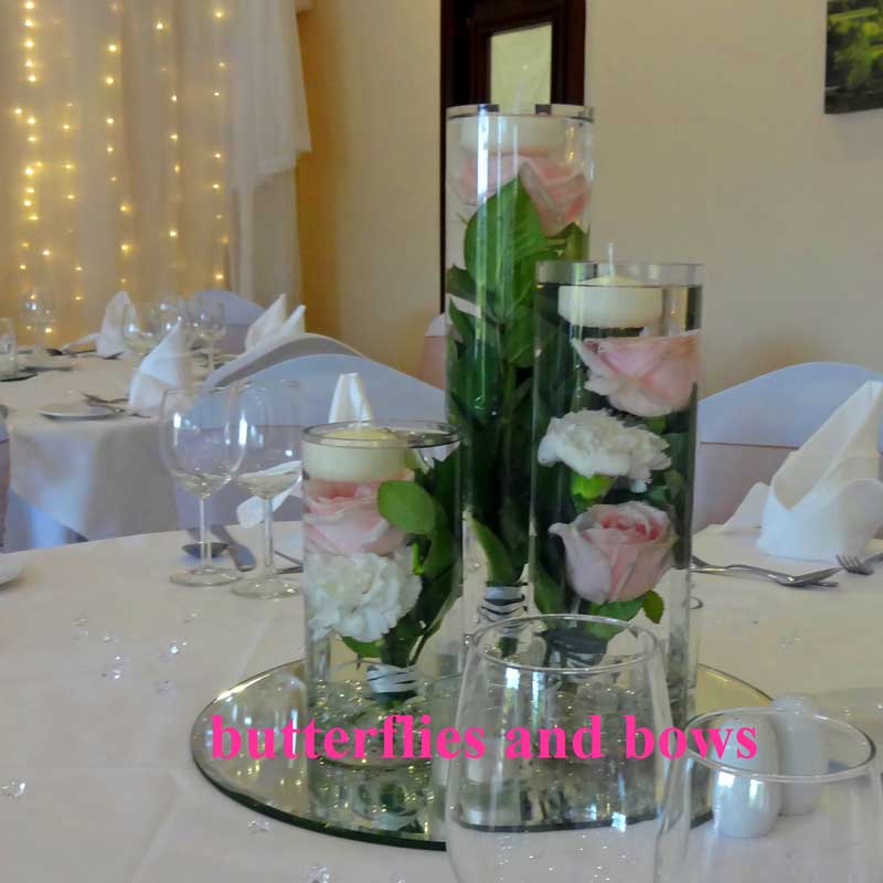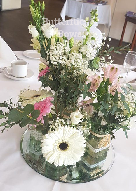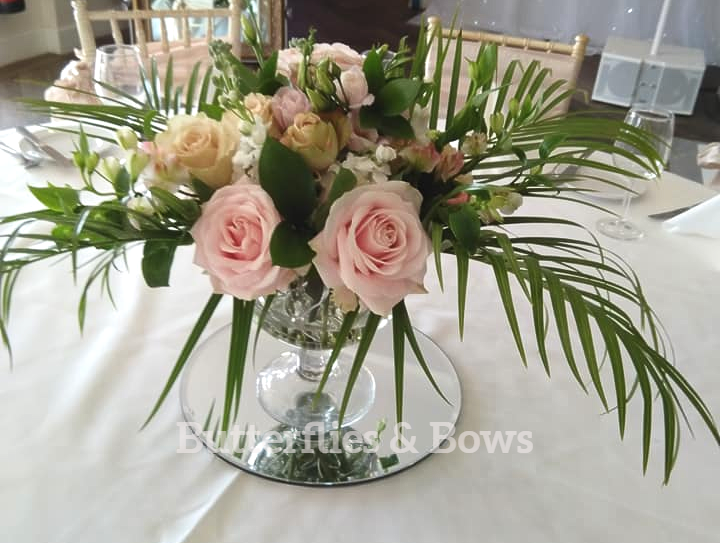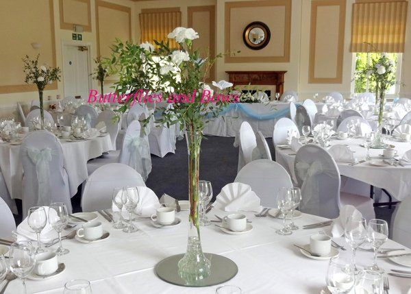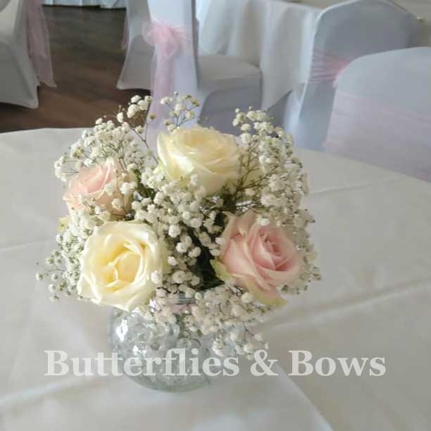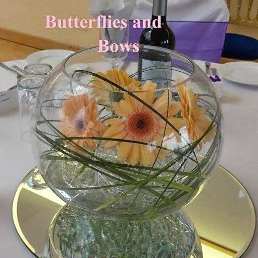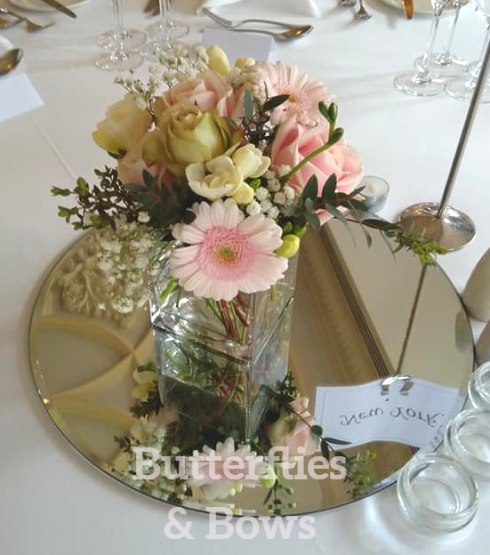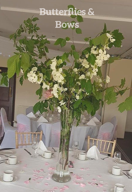 If you need help we will advise you on flowers and foliage to use, to create the perfect display. We can loan you glass vases for your event, free of charge dependent on location, or we can arrange the flowers in containers you can keep. These include fishbowls, lily vases, pedestal vases, tall 50cm glass vases and shorter square glass vases. Whatever colour scheme you have we can include flowers or ribbons to match, tone or complement your chosen colours to ensure the overall ambience is exactly what you hoped for!