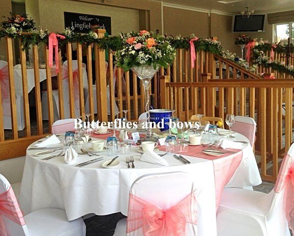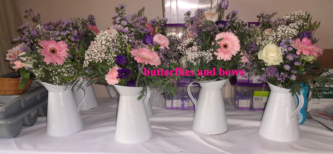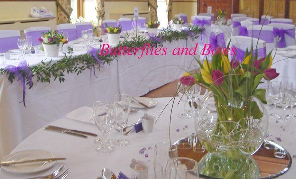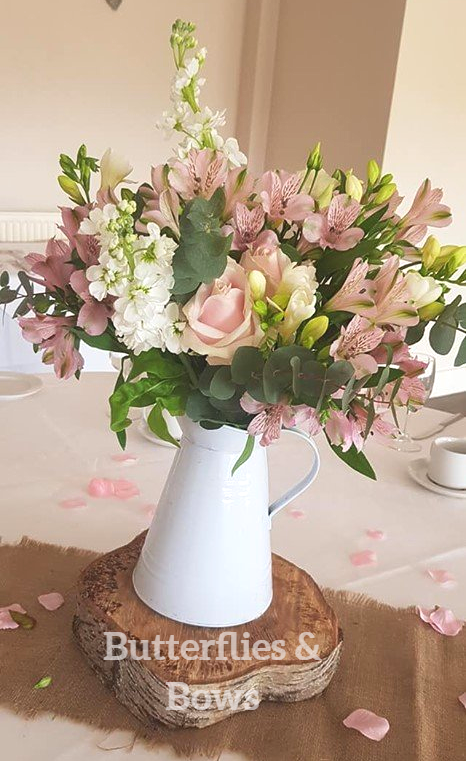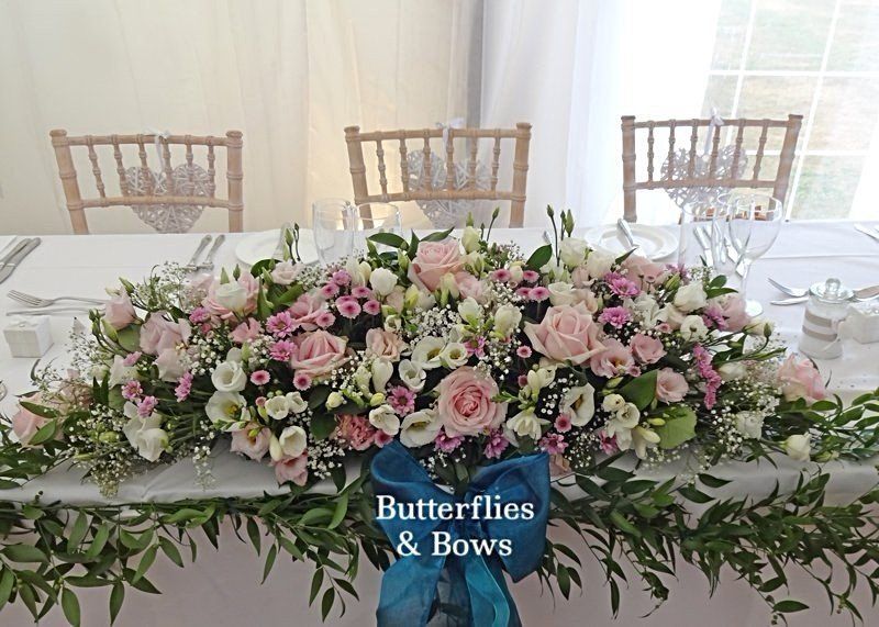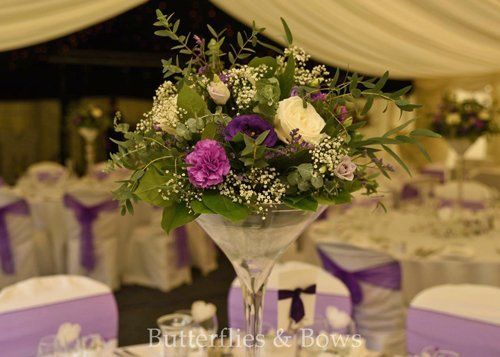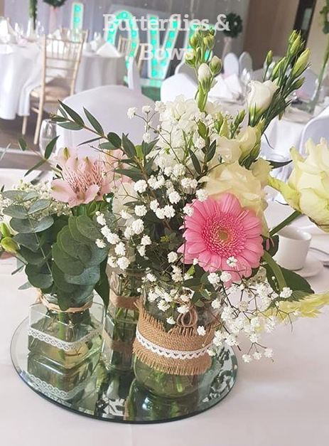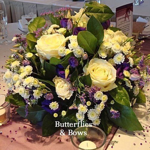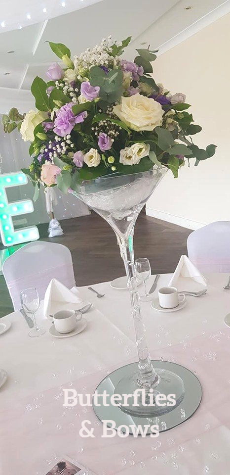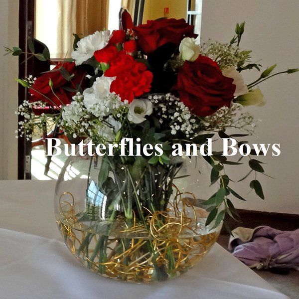If you need help we will advise you on flowers and foliage to use, to create the perfect display. We can loan you glass vases for your event, free of charge dependent on location, or we can arrange the flowers in containers you can keep. These include fishbowls, lily vases, pedestal vases, tall 50cm glass vases and shorter square glass vases. Whatever colour scheme you have we can include flowers or ribbons to match, tone or complement your chosen colours to ensure the overall ambience is exactly what you hoped for!