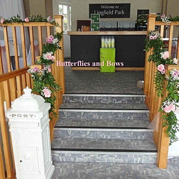 Using high quality artificial garlands we transform them with the use of silk flowers, bells, baubles and ribbons into a truly personalised decoration. They are excellent used in weddings to complement fresh flower displays, hung from beams, across ceilings or inside marquees. At Christmas they can be decorated with golds, reds, or any specified colours; strung with fairy lights they complement any home or venue.
