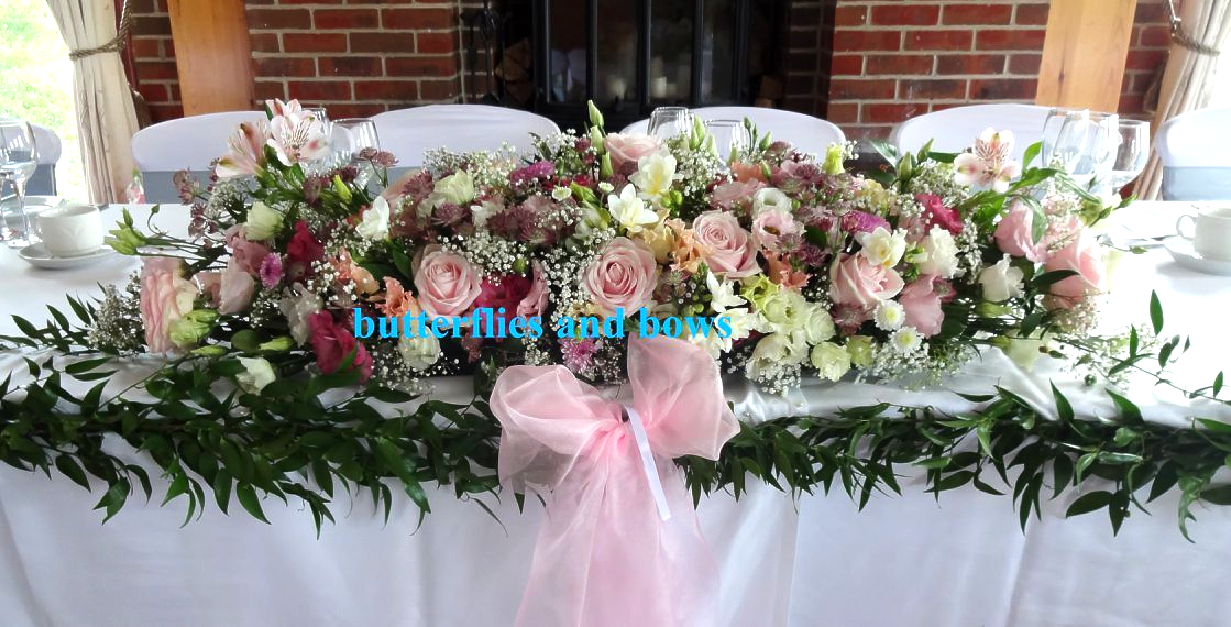 As experienced florists, based in Lingfield, Surrey, we can provide a complete range of styles and designs to suit your occasion, and personal taste - wedding flowers, party flowers, prom flowers, wedding and gift bouquets, table flower arrangements, table centres, vase displays, posies, bouquets, corsages, buttonholes, bouquet deliveries and marquee and venue decorating. Using a huge variety of flowers and foliage, from wild flowers and grasses to exotic Lilies, the flowers we use are based on your colour scheme, the season, your favourites and your budget requirements. We can even add butterflies, feathers, ribbon bows and sparkles into the arrangements.