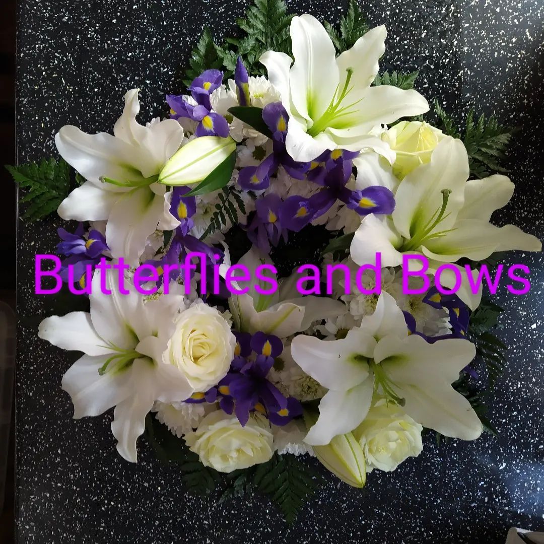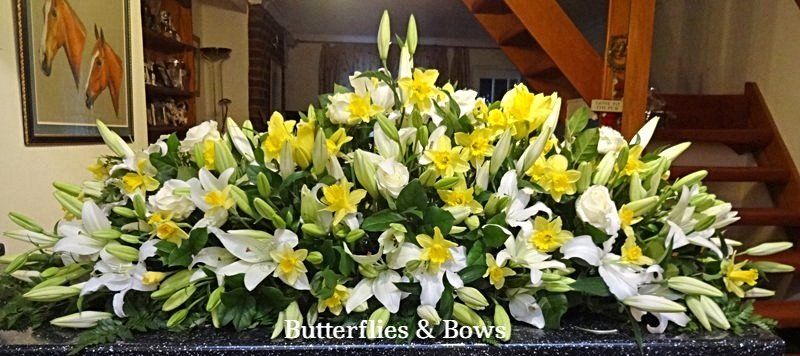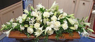 Large casket display, approximately 40" (1m) with Lilies and greenery from £85.00